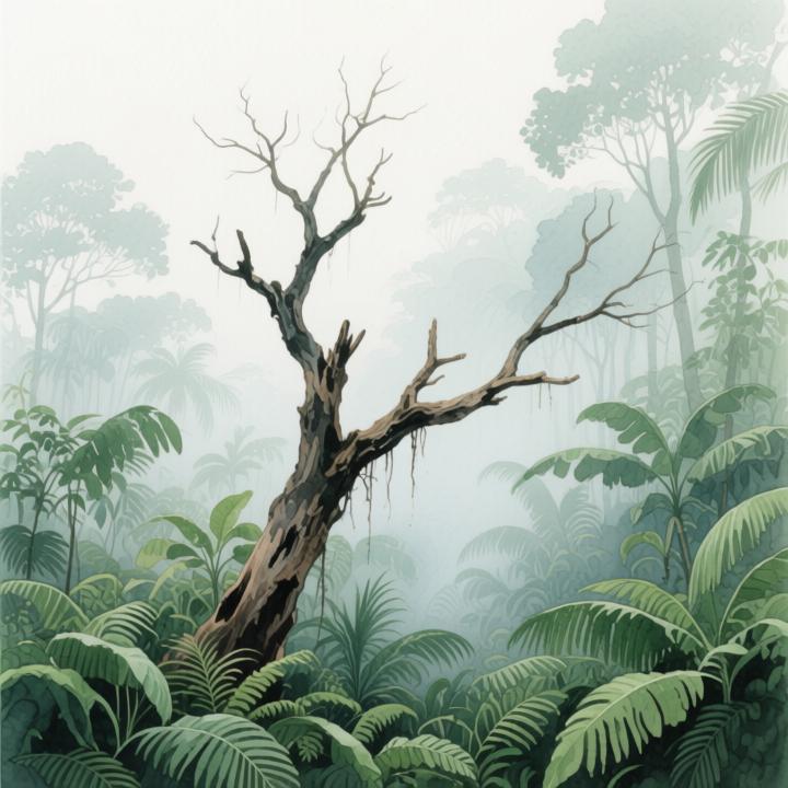 Los pájaros están enfermos, muertos o desaparecidos; las hojas gigantes del pasado ya no cruzan los ríos como antes. La vegetación ha menguado y la selva lanza lágrimas en su despedida. Los mirlos lloran a sus muertos, y los lirios gimen, lamentando su partida. Alguna vez hubo hermosos lirios y orquídeas; ahora, solo quedan loros, periquitos y guacamayos heridos. Reforestemos la selva y vayamos juntos al Amazonas a ayudar a plantar y cuidar la vida.