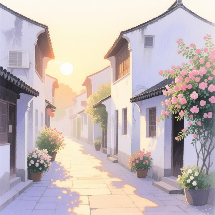 White houses, flower-filled streets
